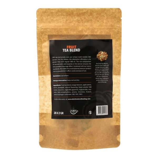 In addition, thanks to the rich combination of cannabinoids and terpenes in the water-soluble CBD, this product offers the best possible result. Combined with CBThee’s luxurious organic tea blends, this CBD Tea Fruit Blend is unparalleled in terms of effect, taste and usability. Try it for yourself!