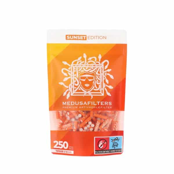 Medusa Filters 6mm 250pcs Sunset Edition is not just another filter. They are made in Germany with high quality standards and have won over even the most skeptical smokers. They offer a cleaner taste without altering the profile of the cannabis flower or tobacco.